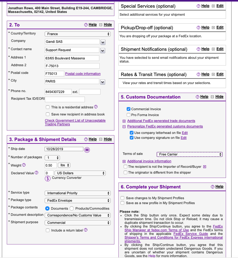 If you are shipping internationally, you will need to fill out the custom information even if your package has no value and is just documents. In this case, here are some helpful tips:
