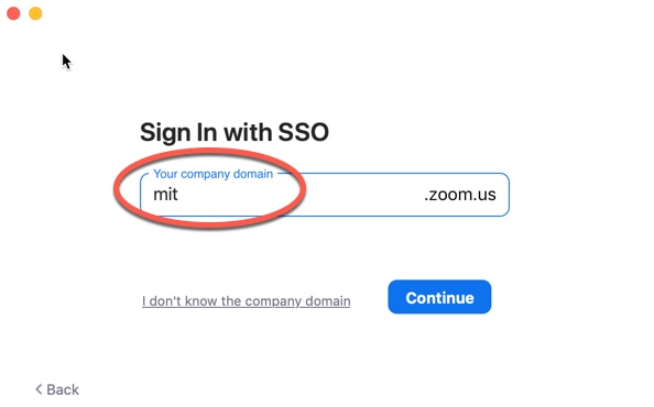Result: You are prompted to enter your company domain for SSO (single sign-on).