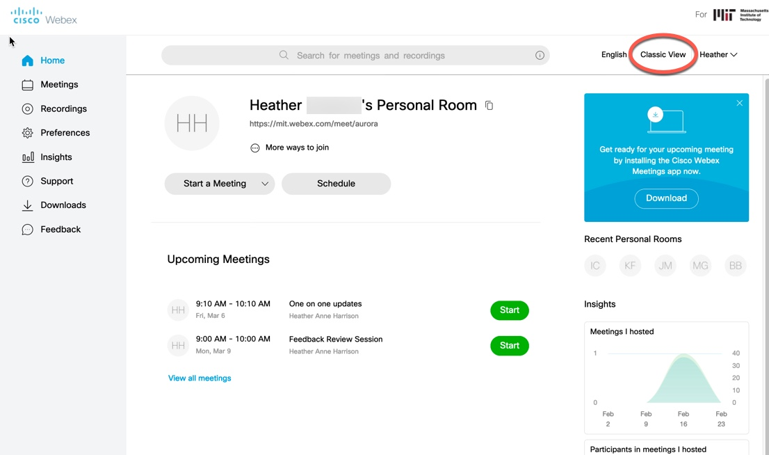 - Login to https://mit.webex.com