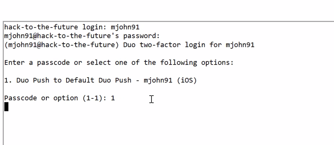- Enter 1, press return key on keyboard (choose Duo Push to Default).