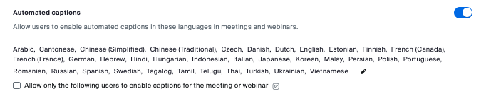 Please note that this is not a translation feature. Its' functionality is such that transcripts will be generated for individuals speaking the selected language that Zoom is configured to listen for.